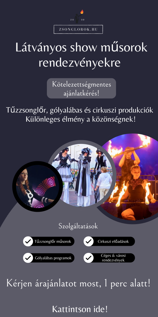A látványos rendezvényprogramok kulcsszerepet játszanak a közönség szórakoztatásában és az esemény sikerében. Legyen szó tűzzsonglőr műsorokról, gólyalábasokról vagy LED zsonglőrökről, minden műsor egyedi élményt nyújt a résztvevők számára.